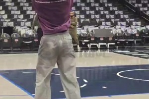 楊瀚森賽前投籃熱身練習中投,手感還是很柔和的!