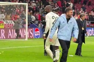 此前呂迪格向馬競球迷做斗牛士動作,馬競球迷回擊礦泉水瓶
