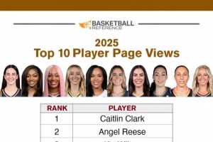 數據網站發布本賽季WNBA球員瀏覽量排名:克拉克位居榜首,阿賈位列第三。