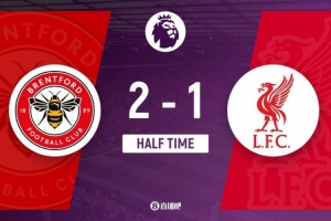 利物浦半場1-2落后布倫特福德,瓦塔拉手榴彈戰術制造威脅后單刀破門,沙德建功。