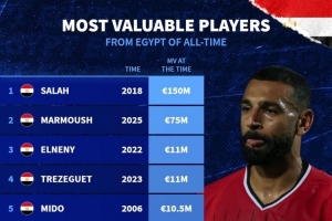 埃及球員歷史身價排名:薩拉赫1.5億歐位列第一,馬爾穆什7500萬歐排名第二