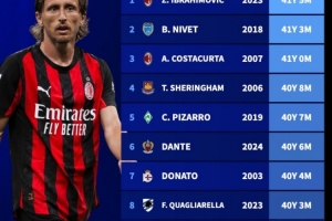 24直播網09月15日訊 意甲第3輪,40歲老將莫德里奇一錘定音,助米蘭1-0絕殺博洛尼亞。此球使他躋身本世紀五大聯賽最年長進球者前10,與伊布、尼維特等傳奇并列。