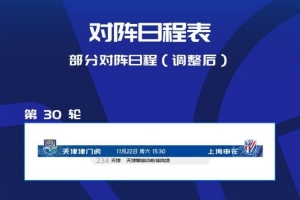 24直播網09月17日訊 中超官方宣布,因滿足球迷觀賽需求并保障安全,原定于11月22日在天津泰達足球場進行的中超第30輪天津津門虎對陣上海申花的比賽,將調整至天津奧體中心體育場(水滴)舉行。