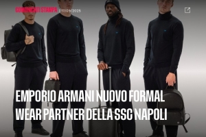 安普里奧-阿瑪尼與那不勒斯的合作關(guān)系成為了雙方的身份體現(xiàn),這兩個(gè)意大利杰出品牌聯(lián)系在一起。(以上為官網(wǎng)公告)