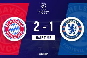 24直播網09月18日訊 歐冠首輪,拜仁主場2-1勝切爾西。上半場,查洛巴自擺烏龍,凱恩造點并命中,帕爾默為切爾西扳回一城。半場比分定格為2-1。