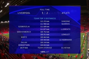 24直播網09月18日訊 歐冠首輪利物浦3-2勝馬競。馬競小將朱利亞諾-西蒙尼以12.23公里跑動距離成為全場跑動王,其隊友巴里奧斯(11.98公里)緊隨其后。利物浦方面,索博斯洛伊以11.68公里領跑全隊跑動榜。