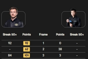 體育資訊9月18日訊 2025斯諾克英格蘭公開賽32進(jìn)16輪次,趙心童對陣杰克-利索夫斯基,全場比賽利索夫斯基打出三桿50+,趙心童打出一桿50+,最終趙心童1-4不敵利索夫斯基,無緣16強(qiáng)。