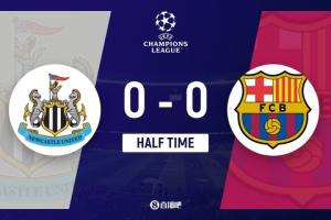 半場結束,巴薩暫0-0紐卡斯爾。