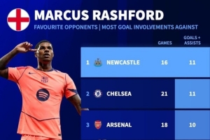 24直播網09月19日訊 歐冠巴薩2-1勝紐卡,拉什福德雙響。據統計,紐卡是拉什福德生涯進球最多的對手之一,16場打入11球,與切爾西并列榜首。