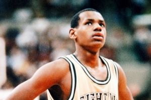 “但我會說,我不確定。我的意思是,我在場上完成一些我本不應該做到的事情。因此當時我就覺得自己很不一般。然后大概在8年級的時候,我去奧蘭多參加一項AAU全國錦標賽。我們隊有我和其他6個孩子,都來自俄亥俄州東北部地區,其中大部分人來自阿克倫,可能有4人來自阿克倫,3個孩子來自克利夫蘭、布雷克斯維爾地區。我們參加了這項大型全美AAU錦標賽,當時有120多支球隊在奧蘭多的世界體育中心參賽,我們最終取得了第二名。我哥們就說,‘你們拿了第二名高興嗎?’‘高興啊!’6、7名來自俄亥俄州阿克倫市的孩子,我們輸給了一支來自南加州的球隊。在那屆錦標賽中,我在做到一些前一年夏天我從沒做到過的事情,我終于開始在比賽中完成扣籃,我們開始贏下一些本不被看好贏下的比賽。我在場上完成一些一兩周前還在夢想做到的動作。我心里就想,‘靠,這一切正在發生。’”我覺得就是那時候吧。”
