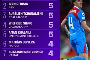 24直播網09月19日訊 歐冠首輪戰罷,攔截榜出爐。加拉格爾(馬競)、佩里西奇(埃因霍溫)、瓊阿梅尼(皇馬)等5人以5次攔截并列榜首。馬蒂亞斯-奧利維拉等4人以4次攔截緊隨其后。
