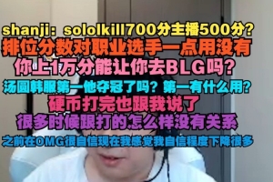 shanji:sololkill700分主播500分?排位分數對職業選手一點用沒有,你上1萬分能讓你去BLG嗎?湯圓韓服他奪冠了嗎?第一有什么用?