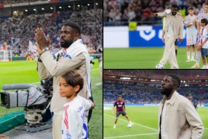 今天,里昂為烏姆蒂蒂舉行了一場簡短但感人的致敬儀式:俱樂部向他贈送了印有其名字的球衣,現(xiàn)場球迷則以熱烈的掌聲表達敬意。隨后,烏姆蒂蒂在賽前進行了開球儀式。
