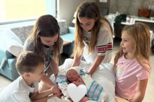 “塞巴斯蒂安-喬治終于來到我們身邊!我們滿心歡喜地沉浸在與寶寶依偎在一起的溫馨時刻。上帝再次賜福于我們,對此我們無比感恩!@海沃德??”海沃德的妻子寫道。