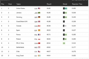 美國隊、牙買加隊和德國隊分居前三晉級決賽,預賽第四至第八位分別是英國隊、加拿大隊、西班牙隊、法國隊和波蘭隊。