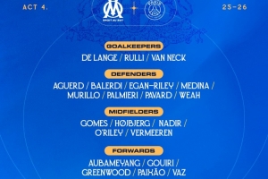 24直播網(wǎng)09月21日訊 馬賽公布了法甲第5輪對陣巴黎的球員名單。名單包含3名門將,后衛(wèi)線上有阿格德、帕瓦爾、維阿等知名球員。中場由霍伊別爾領(lǐng)銜,前鋒線則包括奧巴梅揚、古伊里和格林伍德。雙方將在北京時間明天凌晨2點45分展開強強對話。