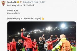 24直播網(wǎng)09月21日訊 切爾西客場(chǎng)1-2負(fù)于曼聯(lián)后,塞維利亞官推發(fā)文調(diào)侃,稱上次在老特拉福德取勝的是2018年的自己,而切爾西上次取勝已是2013年,并幽默地標(biāo)注“我們不踢英超”。