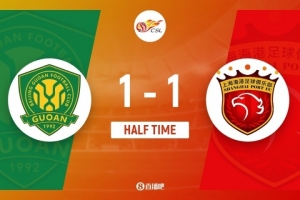 傷停補時6分鐘。上半場比賽結束,北京國安1-1上海海港。