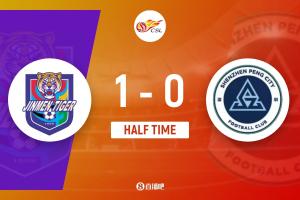 24直播網09月21日訊 9月21日中超第25輪,天津津門虎半場1-0領先深圳新鵬城。上半場基萊斯中柱,張曉彬染黃。半場補時階段,阿代米抓住機會抽射破門,為天津隊取得領先。