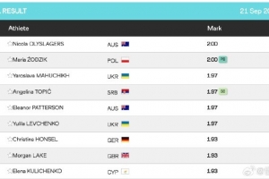 體育資訊9月21日訊 田徑世錦賽結束女子跳高決賽爭奪,澳大利亞選手奧利斯拉格斯憑借過2.00米一次過奪得金牌。