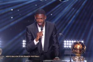 登貝萊:"我此刻的經(jīng)歷非同尋常。這是與巴黎圣日耳曼一起度過的不可思議的一年。我有點(diǎn)緊張,這并不容易。由羅納爾迪尼奧為我頒發(fā)這個(gè)獎(jiǎng)項(xiàng),真是太特別了。"