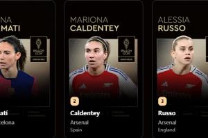 24直播網09月23日訊 2025年金球獎揭曉,邦馬蒂榮膺女足金球獎,卡爾登泰、魯索分列二、三位。邦馬蒂以58場20球16助助巴薩包攬三冠;卡爾登泰57場23球20助率阿森納奪歐冠;魯索56場25球9助助阿森納及英格蘭女足登頂。