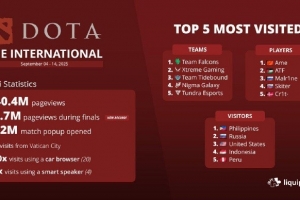 其中瀏覽最多的5個戰隊是Falcons,XG,Tidebounds,Nigma和Tundra戰隊;
