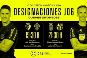 西甲第6輪兩場比賽裁判安排: