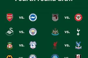 24直播網(wǎng)09月25日訊 英格蘭聯(lián)賽杯第四輪抽簽結果出爐。焦點戰(zhàn)包括利物浦對陣水晶宮、阿森納戰(zhàn)布萊頓、曼城遭遇斯旺西,以及紐卡斯爾與熱刺的“東北德比”。本輪比賽將于10月27日當周進行。