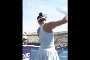 體育資訊9月25日訊 博主“tennis巴蒂網球”曬出一段視頻,呈現了韋思佳與現場觀眾之間的插曲。