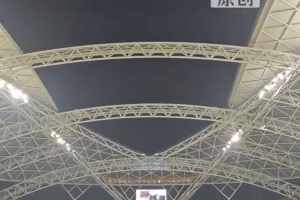 南通體育會展中心體育場被稱為“南鳥巢”,是國內首座開閉頂體育場,2200噸鋼鐵屋蓋合攏或開啟只需40分鐘。比賽開始前15分鐘,賽場頂部已經完全開啟,露出璀璨的星空。