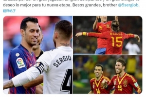 24直播網(wǎng)09月26日訊 西班牙中場布斯克茨宣布賽季后退役,拉莫斯社媒發(fā)文祝福。他盛贊布斯克茨以謙遜成就非凡,是杰出中場與真摯朋友,感謝其貢獻與榜樣,并祝其新旅程順利。