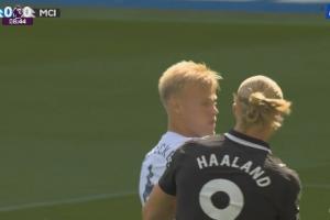 體育資訊08月31日訊 曼城vs布萊頓第9分鐘,哈蘭德單刀力量太小被沒收!跟防的范赫克推搡哈蘭德,隨后哈蘭德回擊頂牛!