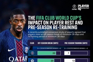 FIFPRO指出,根據(jù)相關研究,球員賽季之間的休賽期建議為28天,而季前訓練時間也建議為28天,但受到世俱杯的影響,球員們根本得不到應有的休息時間。