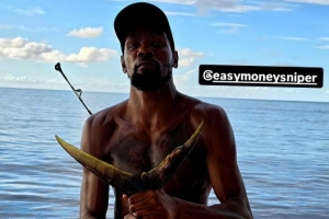 休賽期,杜蘭特在巴哈馬與新隊友共度時光,加入了一次由史蒂文-亞當斯、杰肖恩-泰特和凱文-哈里斯組織的釣魚之旅。