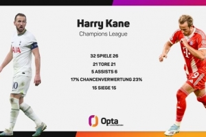 數(shù)據(jù)提供商Opta發(fā)布的詳細對比顯示,凱恩在拜仁不僅在更少的場次里追平了進球紀錄,其他關鍵數(shù)據(jù)也同樣出色。