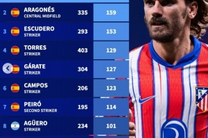 24直播網(wǎng)10月01日訊 在歐冠5-1大勝法蘭克福的比賽中,格列茲曼攻入個人馬競生涯第200球,榮膺隊史射手榜第一。他超越傳奇教練阿拉貢內(nèi)斯(159球),成為俱樂部歷史頭號射手,其里程碑式成就彰顯了他在馬競的傳奇地位。