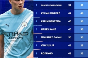 24直播網(wǎng)10月02日訊 歐冠戰(zhàn)報:曼城2-2摩納哥,哈蘭德梅開二度。據(jù)統(tǒng)計,自2019年首秀以來,哈蘭德以50場52球的傲人戰(zhàn)績領(lǐng)跑歐冠射手榜,力壓萊萬、姆巴佩等頂級球星,展現(xiàn)其恐怖的進球效率。