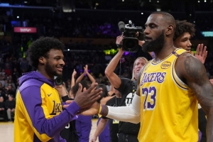24直播網(wǎng)10月02日訊 NBA評論員杰弗森在播客中調(diào)侃詹姆斯退役問題,反問“你是說布朗尼嗎?”。他皮了一下,引出其子布朗尼的NBA新秀賽季數(shù)據(jù):場均2.3分0.7籃板0.8助攻,投籃命中率31.3%。