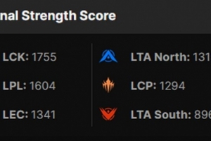 LCK和LPL保持不變,LEC高于LTA North,LCP緊隨其后,LTA South保持不變
