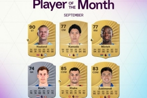24直播網10月02日訊 EA公布英超9月最佳球員候選,哈蘭德、扎卡、蘇維門迪在列。哈蘭德3場5球1助攻表現搶眼;扎卡3場成功對抗23次;蘇維門迪3場貢獻2球。三人憑借出色數據入選,競爭本月最佳球員榮譽。