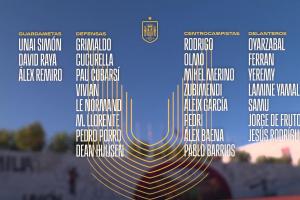 中場:羅德里(曼城)、奧爾莫(巴塞羅那)、梅里諾(阿森納)、蘇維門迪(阿森納)、阿萊克斯-加西亞(勒沃庫森)、佩德里(巴塞羅那)、阿萊克斯-巴埃納(馬德里競技)、巴里奧斯(馬德里競技)