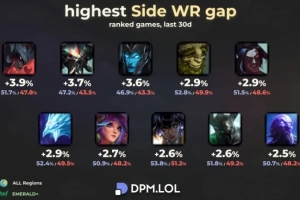 體育資訊10月4日訊 外網數據統計媒體DPM.LOL分享了紅藍方勝率差距最大英雄榜單,具體如下: