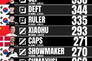 7.Showmaker:75場/270總擊殺 場均3.60擊殺