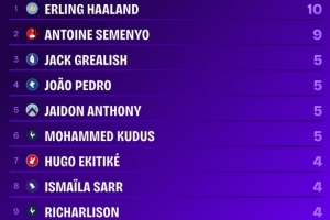 24直播網10月06日訊 英超第7輪,曼城1-0小勝布倫特福德,哈蘭德打入全場唯一進球。他本賽季直接參與10球,領跑英超射手榜,成為首位達成此里程碑的球員。