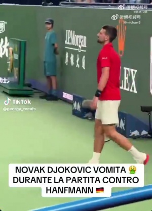 在比賽中,有觀眾拍到德約科維奇在場上2次嘔吐,他仍然帶著不適的身體堅持打比賽,沒有任何要退賽的意思。