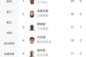 24直播網10月06日訊 中甲聯賽25輪射手榜更新,本輪雙響的姆本扎以24球高居榜首。埃里克斯以19球位列第二,穆謝奎17球第三,向余望15球第四。