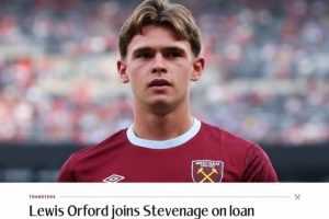 體育資訊9月2日訊 西漢姆確認,19歲中場球員劉易斯-奧福德租借加盟英甲斯蒂文尼奇,租期一個賽季。