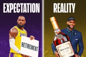 退役?最后一舞?也許是一場告別巡演?現(xiàn)在決定二已經(jīng)揭曉答案,沒有熱淚盈眶的告別,沒有球衣升上球館上方那一刻的感動(dòng),不是退役演講,而是一則限量版的聯(lián)名酒廣告。從“我要把天賦帶到南海岸”,到“我要把天賦帶到酒柜頂層”。我們以為要失去勒布朗,結(jié)果發(fā)現(xiàn),他只是又拿到了一份大合同。