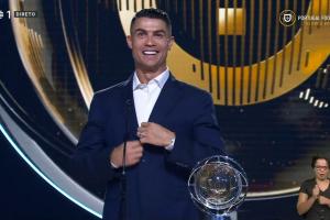 24直播網10月08日訊 C羅獲葡萄牙環球聲望獎,稱其特殊且自豪。他強調身披國家隊戰袍22年,代表足球巔峰,并渴望再踢幾年,助球隊進軍世界杯。他感謝隊友,呼吁專注當下,心懷夢想。